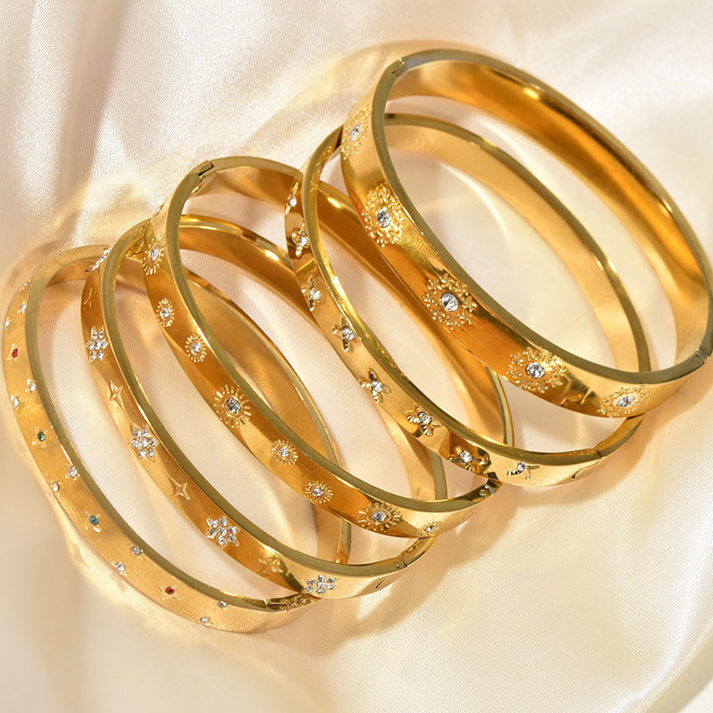 Retro Sunflower Diamond-Encrusted Bracelet Gold Polished Cuff